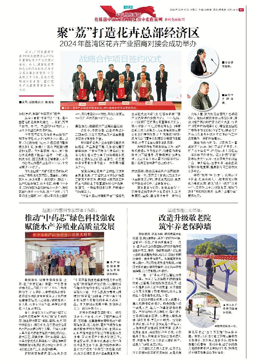 新快報(bào)訊 花地接花津,四時(shí)皆似春。12月6日,荔灣區(qū)在1906科技園舉辦2024年荔灣區(qū)花卉產(chǎn)業(yè)招商對(duì)接會(huì)。會(huì)上,荔灣區(qū)招商和農(nóng)業(yè)部門(mén)與相關(guān)花卉協(xié)會(huì)及頭部企業(yè)簽訂11份戰(zhàn)略合作協(xié)議,荔灣與花都兩區(qū)農(nóng)業(yè)部門(mén)簽訂花卉產(chǎn)業(yè)高質(zhì)量發(fā)展合作協(xié)議。