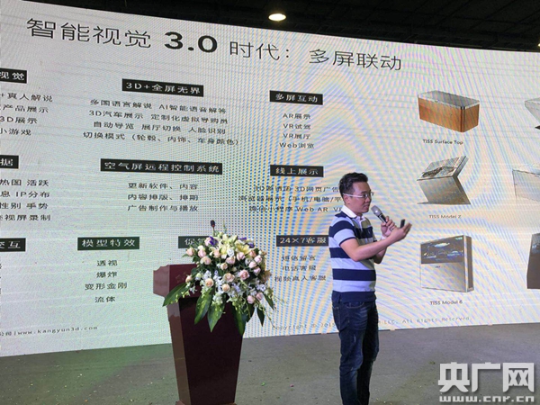 當前先進、不斷迭代的3D“黑科技”產(chǎn)品正以飛速的步伐深入各個產(chǎn)業(yè),在不久的將來,當眼見的所有事物3D化,真正進入到視覺智能3.0時代時,人人都能感受到這一波“黑科技”所帶來的震撼,以及給生活帶來的便利。在展會現(xiàn)場,康云科技向觀眾展示了汽車多維視覺智能服務(wù)平臺,在一塊虛擬屏幕前,通過體感、手勢、觸摸、眼球移動等多種方式與TISS屏內(nèi)容交互,用戶在線如身臨其境地看車、選車,360度全景查看汽車內(nèi)飾,若想看汽車輪轂、內(nèi)飾、車身顏色等,也能自由切換……據(jù)悉,目前這一套新系統(tǒng)已在廣州4S店落地應(yīng)用,它可實現(xiàn)人工智能3D科技與汽車銷售完美融合?!斑@套黑科技仍然是基于智能3D掃描技術(shù),將線下實體的展廳、汽車等進行掃描,導(dǎo)入服務(wù)器建模渲染?!睂<艺J為,智能系統(tǒng)針對汽車的特性,加入360度全景汽車內(nèi)飾查看,并且加上人臉識別、智能導(dǎo)購等模式,VR展示與VR試駕體驗,用空氣屏承載的多維視覺展示途徑,促進用戶與產(chǎn)品更好互動。