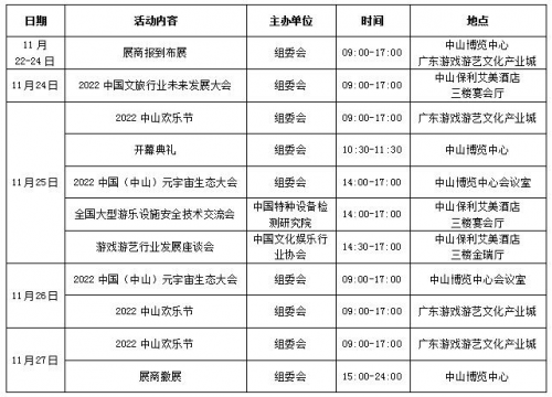 作為集“展、節(jié)、會(huì)、獎(jiǎng)”于一體的商務(wù)合作交流平臺(tái),2022中山游博會(huì)將舉辦“全國大型游樂設(shè)施安全技術(shù)交流會(huì)”、“第二屆中國文旅行業(yè)未來發(fā)展大會(huì)”、“首屆中國(中山)元宇宙生態(tài)大會(huì)”等論壇會(huì)議:邀請(qǐng)行業(yè)重量級(jí)大咖、優(yōu)秀創(chuàng)新品牌從業(yè)者、領(lǐng)軍企業(yè)高管和專家大師齊聚,聚焦產(chǎn)業(yè)熱點(diǎn),發(fā)布前沿趨勢(shì),分享行業(yè)“干貨”,與3萬+行業(yè)者同場(chǎng)交流學(xué)習(xí),激發(fā)群體智慧、產(chǎn)業(yè)活力,賦能升級(jí)發(fā)展。