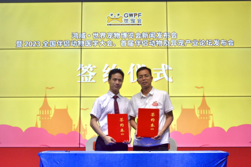 圖左:世寵會(huì)主理人王登云,圖右:廣東省畜牧獸醫(yī)學(xué)會(huì)寵物分會(huì)秘書長(zhǎng)陳修強(qiáng)